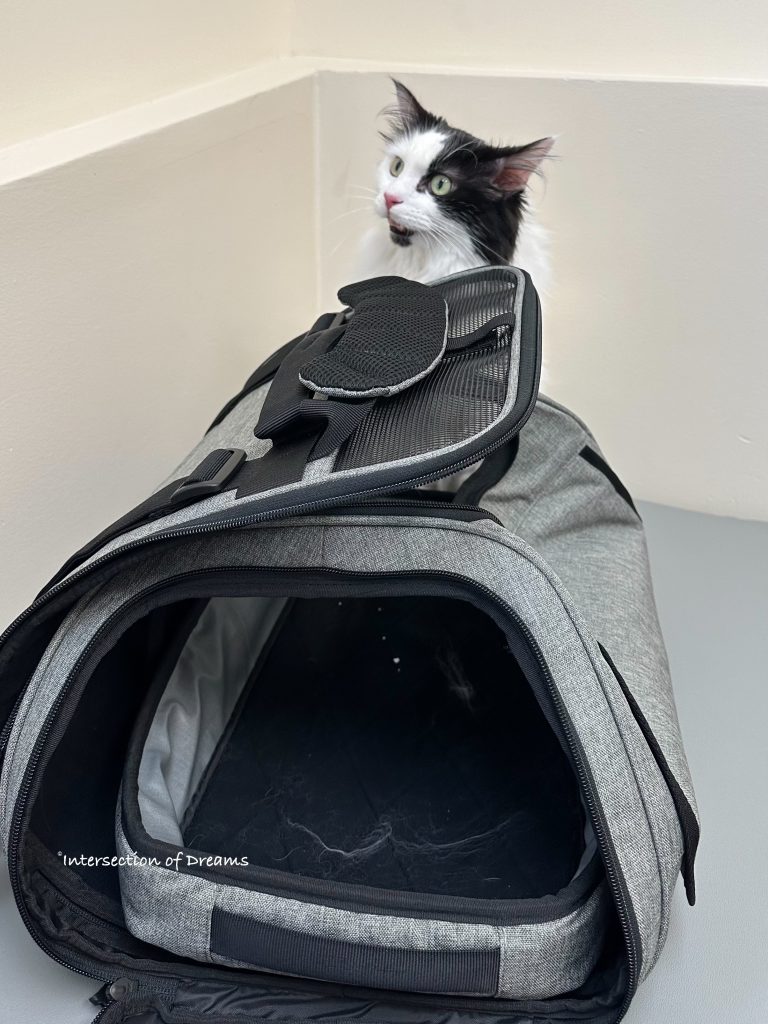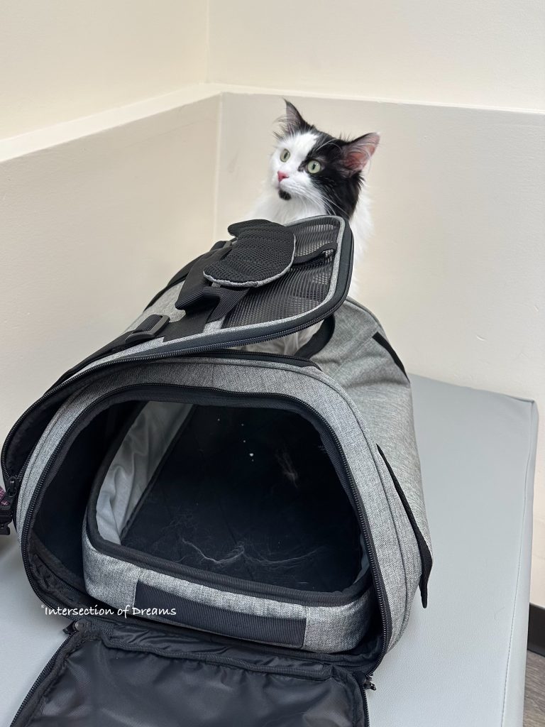 Also, shout out to Travel Cat for making a really fantastic carrier that is sturdy, cozy, maneuverable, and highly secure with clip latches on all the zippers. The kitties like to hang out in the carriers at home because they’re a nice safe place to burrow.