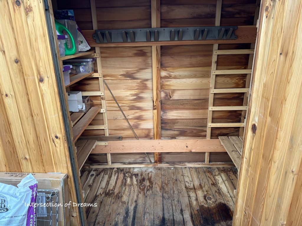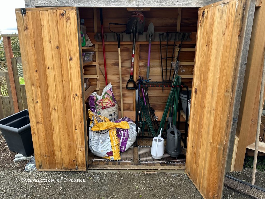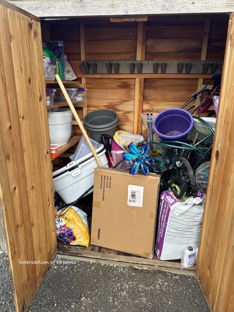 However, when I moved in last fall, there wasn’t time to properly store and organize the contents of the sheds, so everything got sort of tipped into the sheds in chaotic piles and nothing was really accessible.