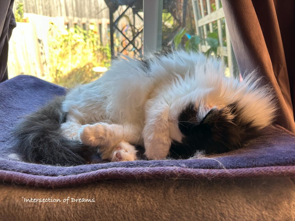 Finn slept through the whole process, but he loves having my bed right below his favorite tower. In fact, he loves it so much that he’s gone over a week without an IBD flare-up, which had been happening on a pretty regular basis pretty much since we moved in here.